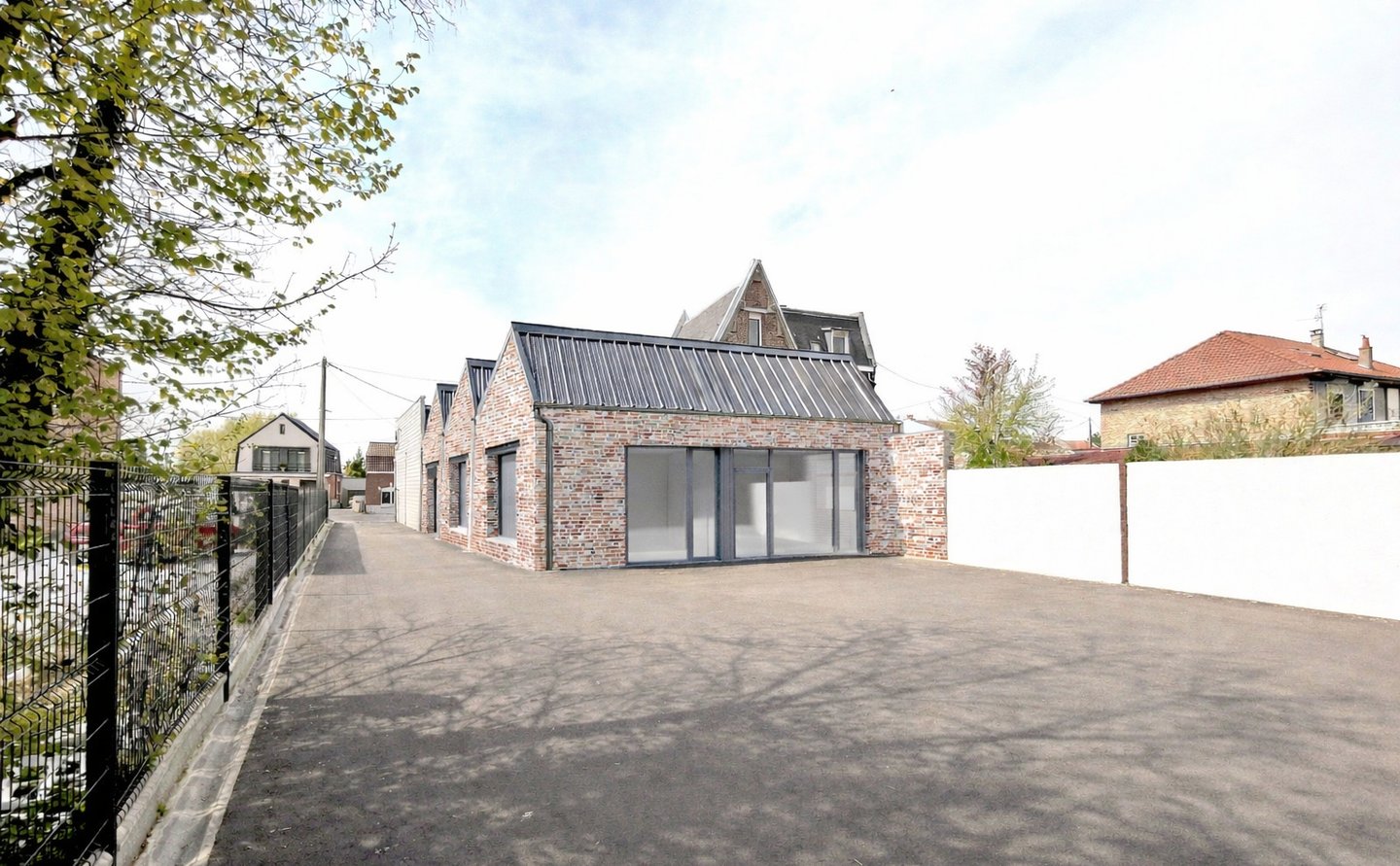 En façade, nous avons souhaité retrouver la brique d’origine et apporter un grand espace vitré donnant sur cour pour un réel gain de luminosité de l’ensemble. Les ouvertures en toiture viennent compléter cet apport.